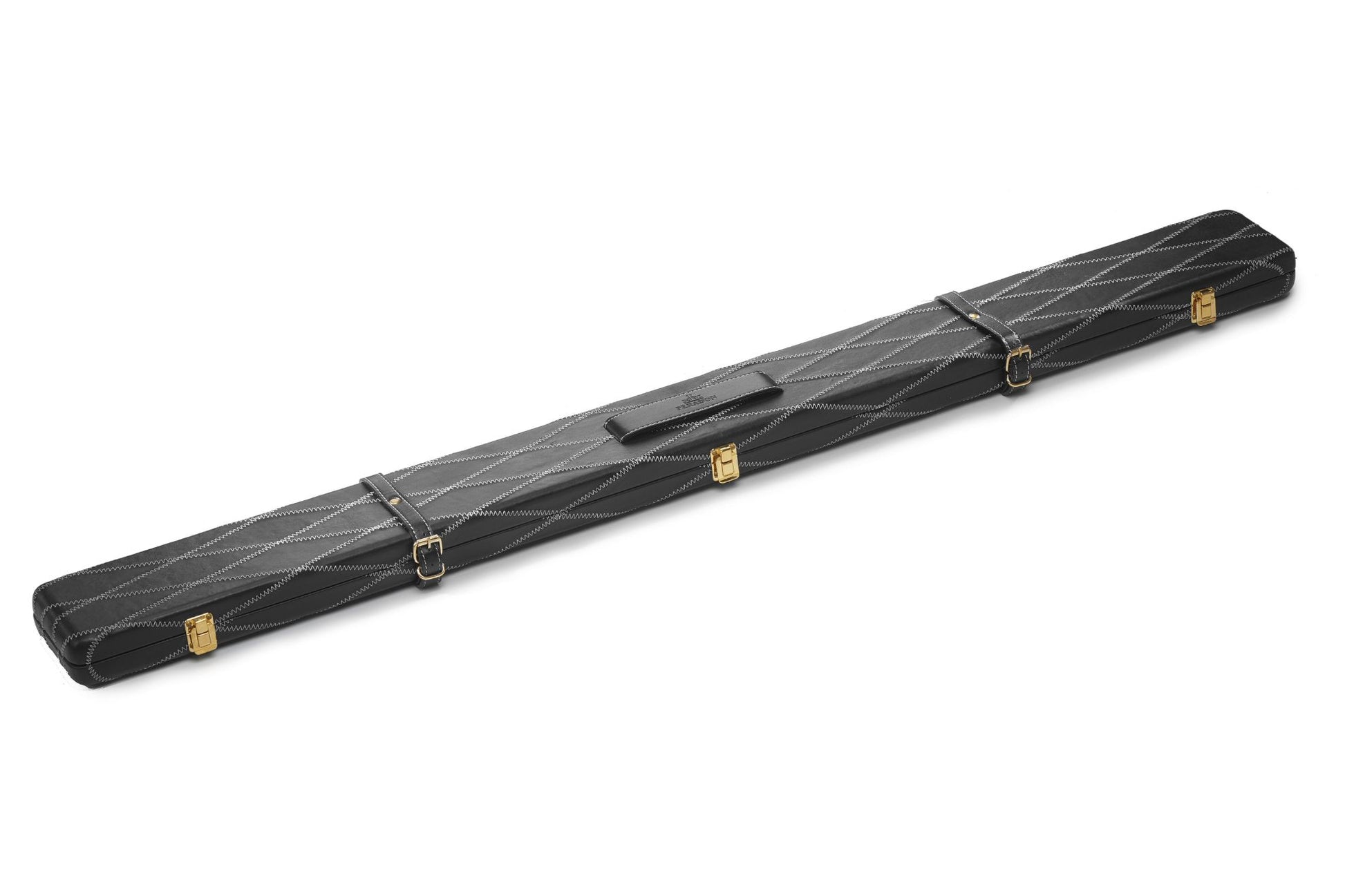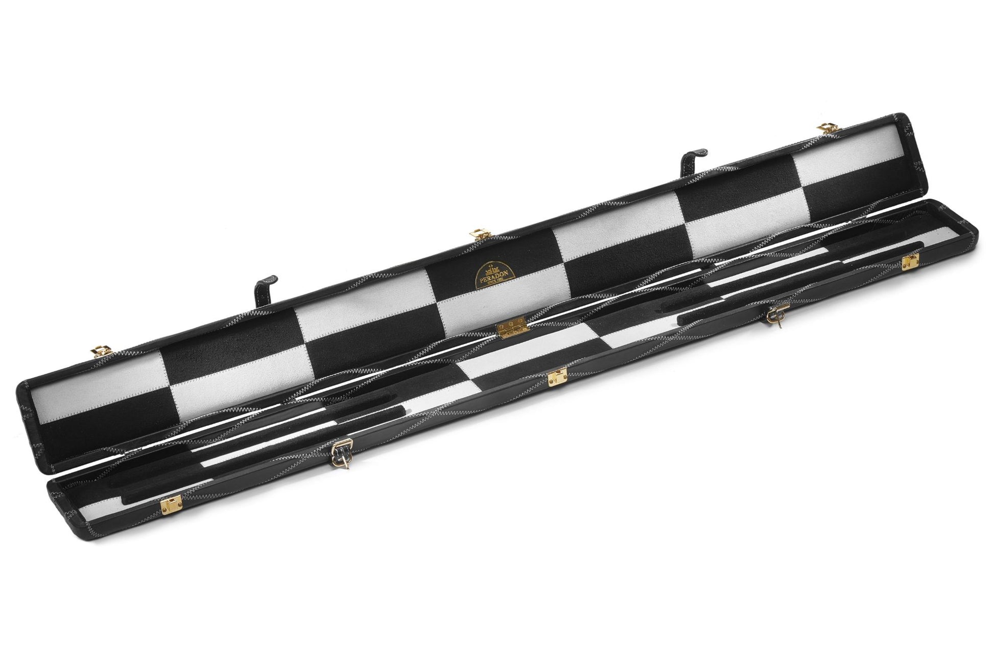 Peradon hand made leather cases are truly stunning cases. Whilst many alternative cases may look good in photographs these cases are skilfully constructed by hand down with attention right to the smallest detail. They are constructed as a wooden case which is then beautifully upholstered with the finest quality leather on the exterior and with suede leather on the padded interior which holds the cue in place. The smooth rounded leather case ends are testament to the skill of the case maker. The solid brass hinges and catches are of the highest quality as are the leather straps and buckles. The interior compartments of this case have been cleverly thought out to be much more versatile than most other cases, whilst keeping the length to a minimum. The case will hold a cue with a shaft length up to 47” and along with the butt section will hold additional extensions and butt end extensions. Alternatively the case can also be used to carry two cues without extensions. For details of the compartment sizes please see the chart below. We recommend that you measure the length of your cue including any protruding joints to ensure they will fit. If you are considering purchasing in conjunction with a cue offered by Peradon details of all cue shaft, butt and extension lengths can be found on this website. The exterior of the case is embossed with the distinctive Peradon trademark.