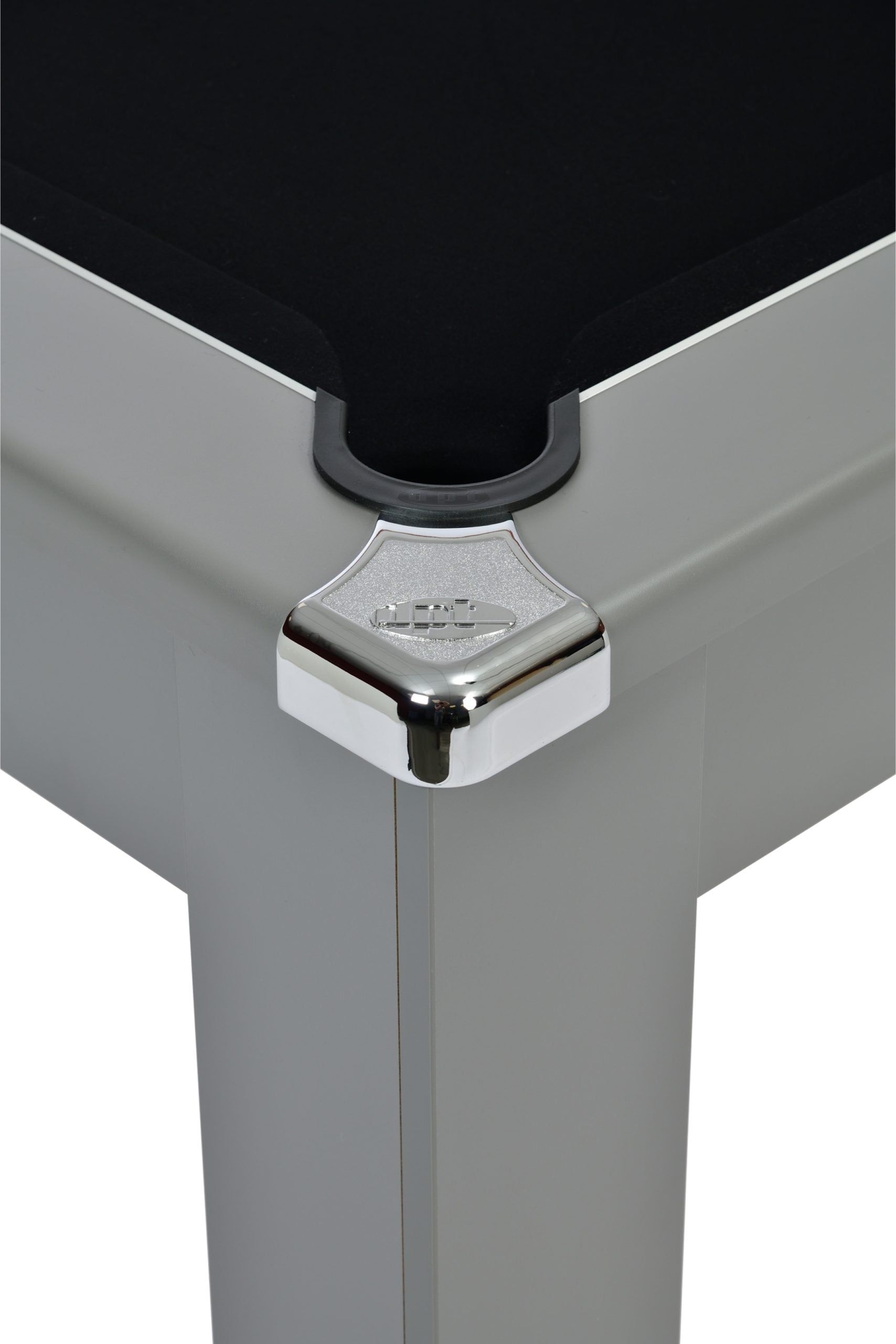 Instead of a hole in the end of the table, we have a dropdown door. Which covers the opening where the balls return when potted. It’s a metal door with a push opening latch.